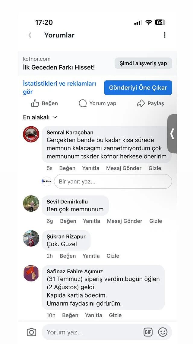 Katılımcılar, nefes alabilen özel kılıf yapısı sayesinde terleme sorunu yaşamadan konforlu bir uyku deneyimi yaşadıklarını belirtti.